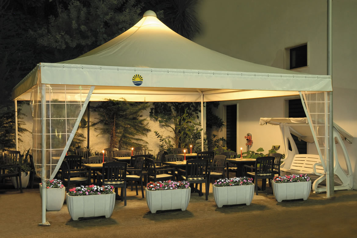 Spazio all’aperto attrezzato con tavolini e divanetti